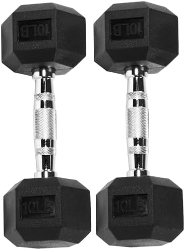 Signature Fitness Rubber Encased Hex Dumbbell, 10LB Pair